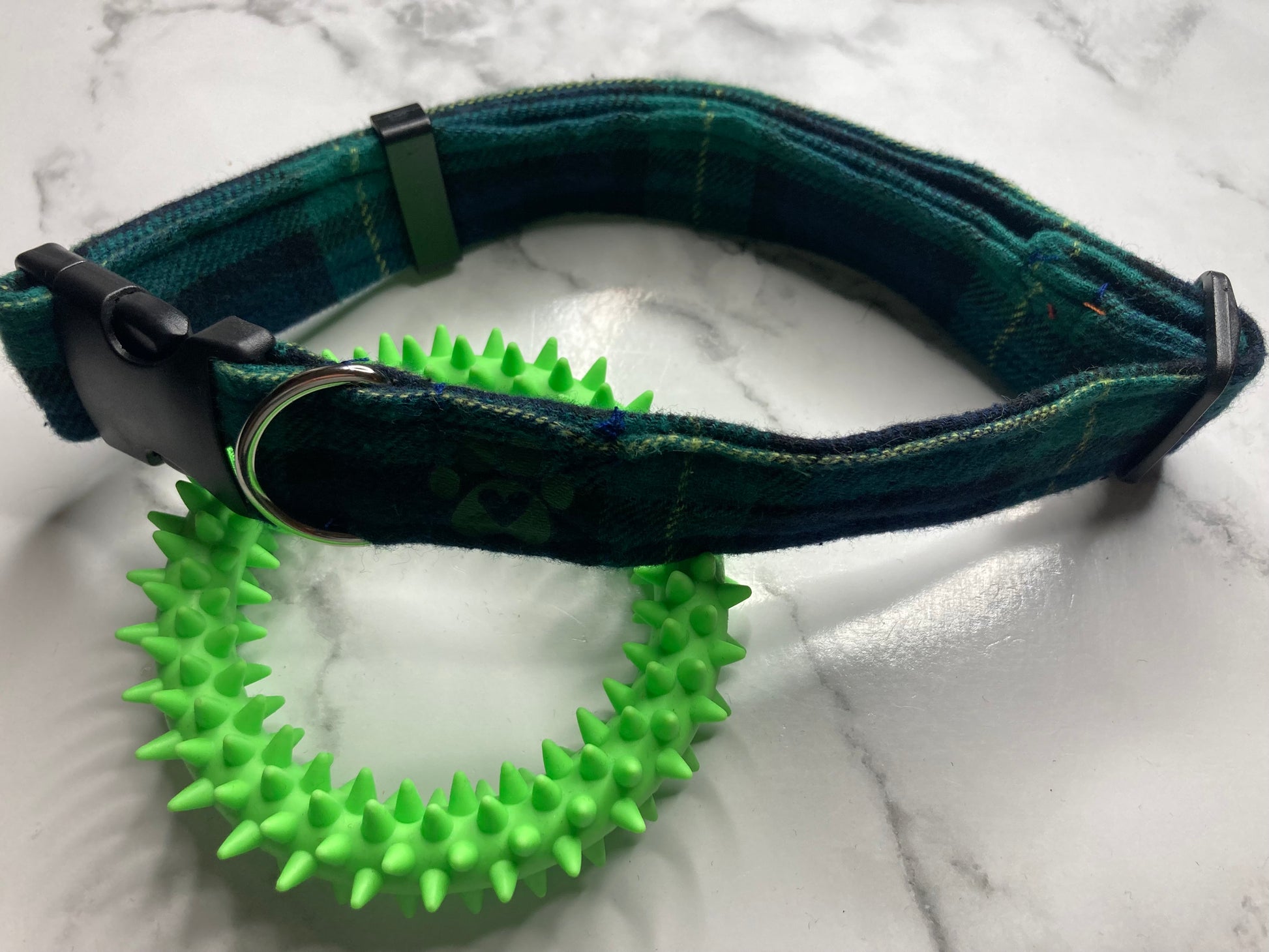 Beautiful green tartan fabric handmade adjustable dog collar collection.