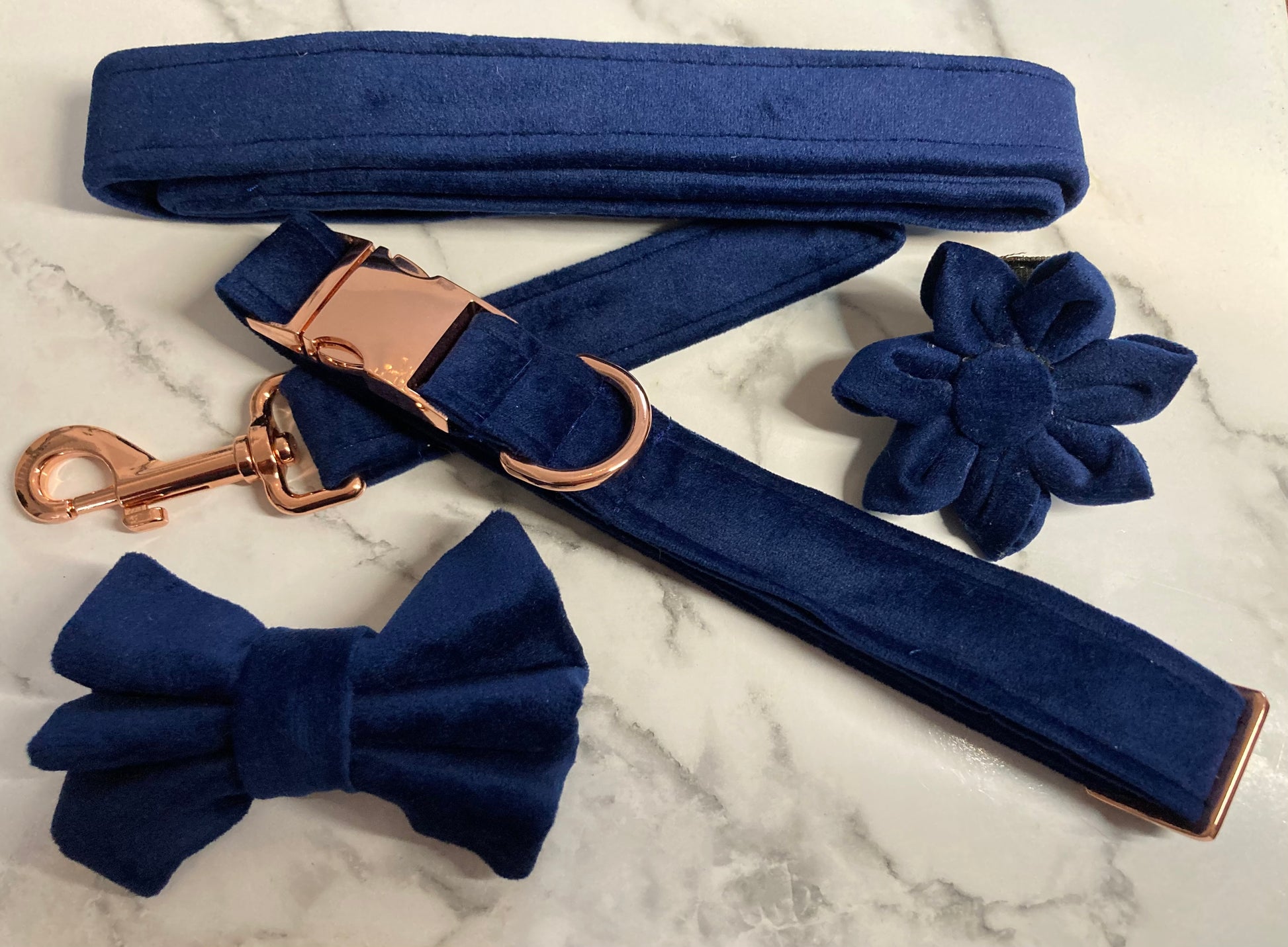 Navy Luxury Velvet Dog Collar Flower: Pet Collar Accessory