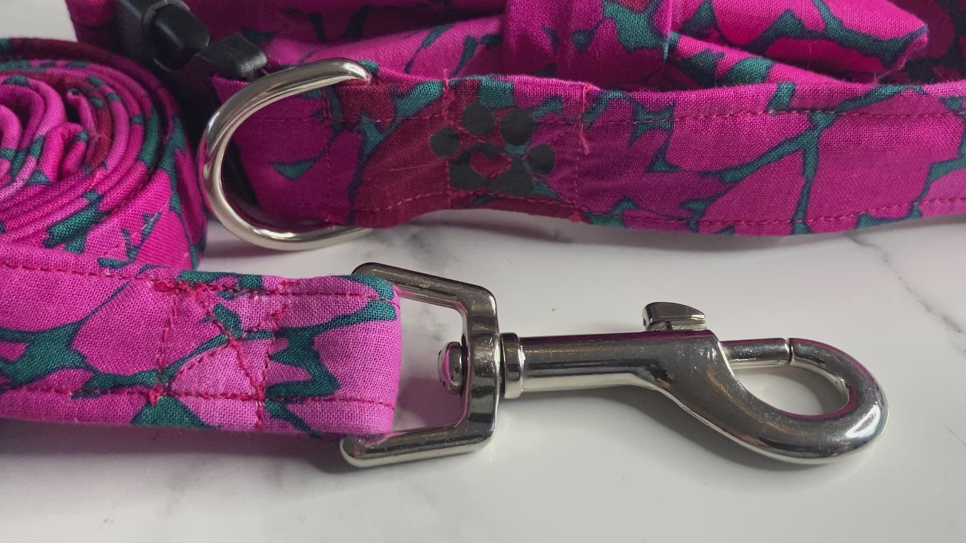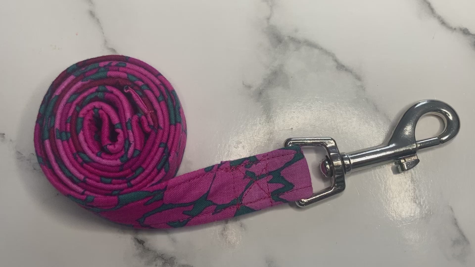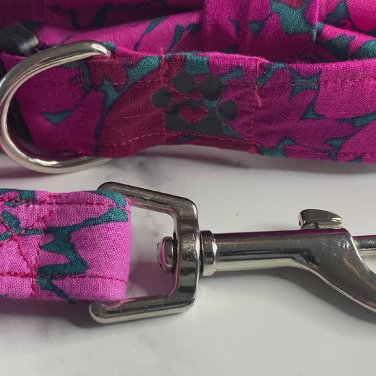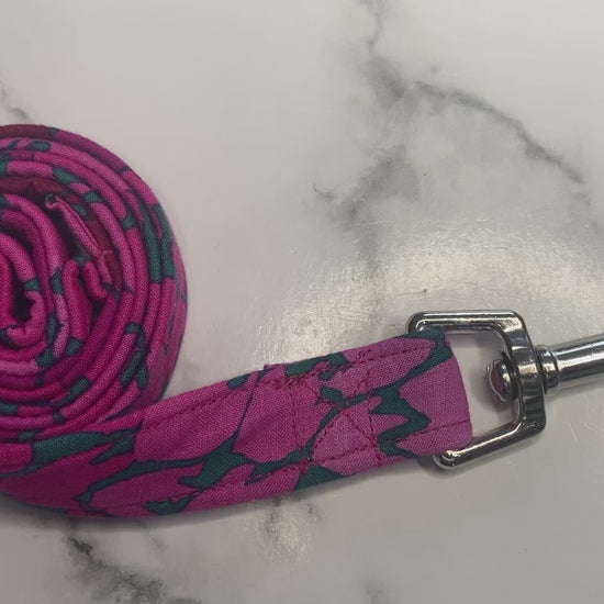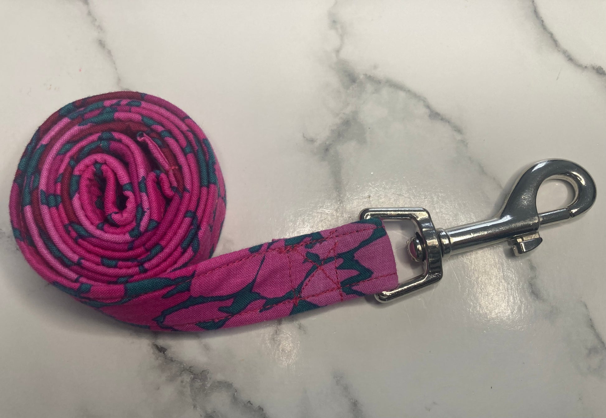 Ombre pink leaf dog lead, handmade pet lead, designer fabric, matching dog accessories