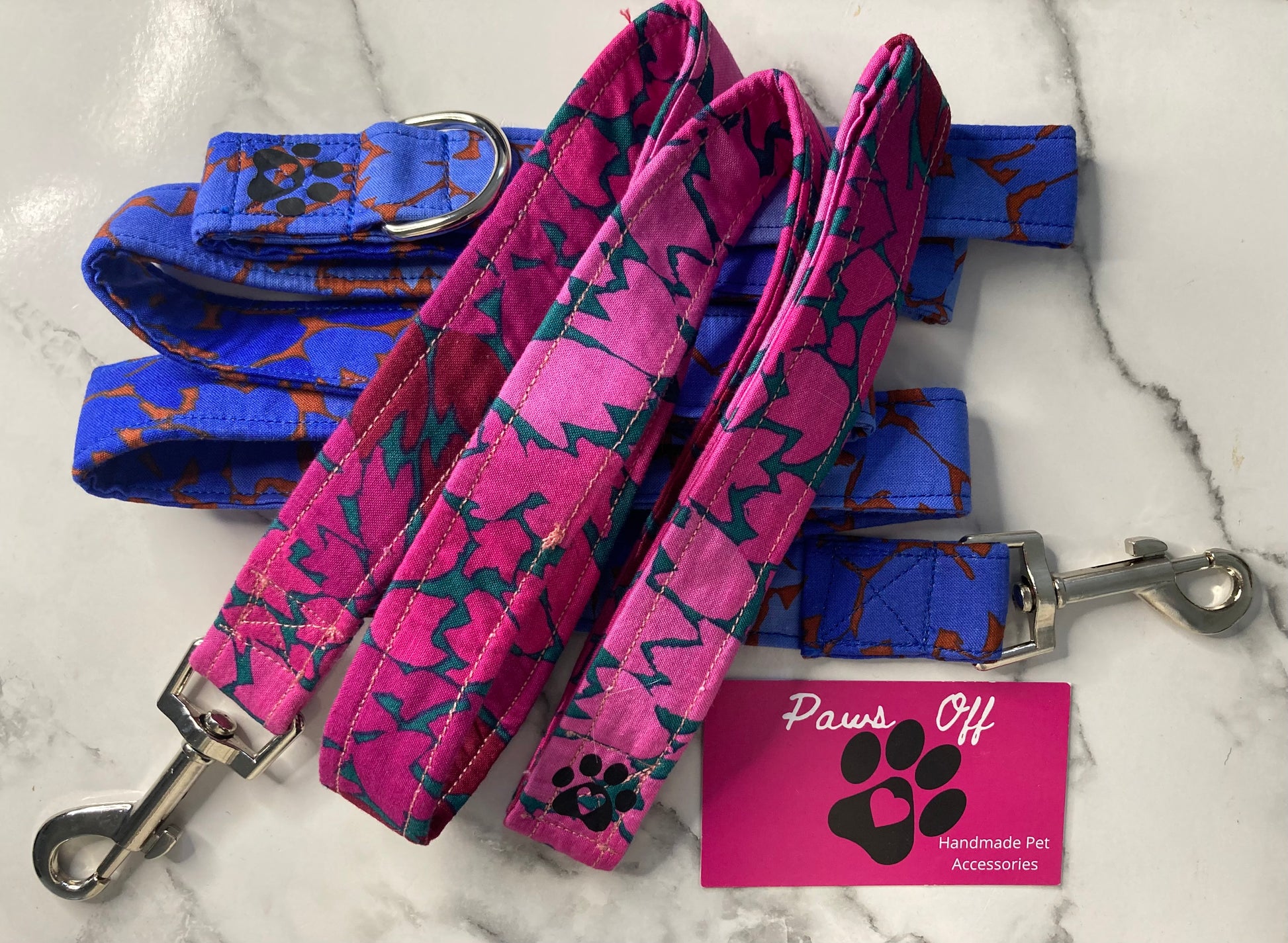 Step up your pup’s walk game with this stylish and sturdy handmade dog lead, designed for daily adventures and big personalities! Crafted from durable nylon webbing and wrapped in beautiful fabric, this leash combines strength, comfort, and style in one paw-some package.
