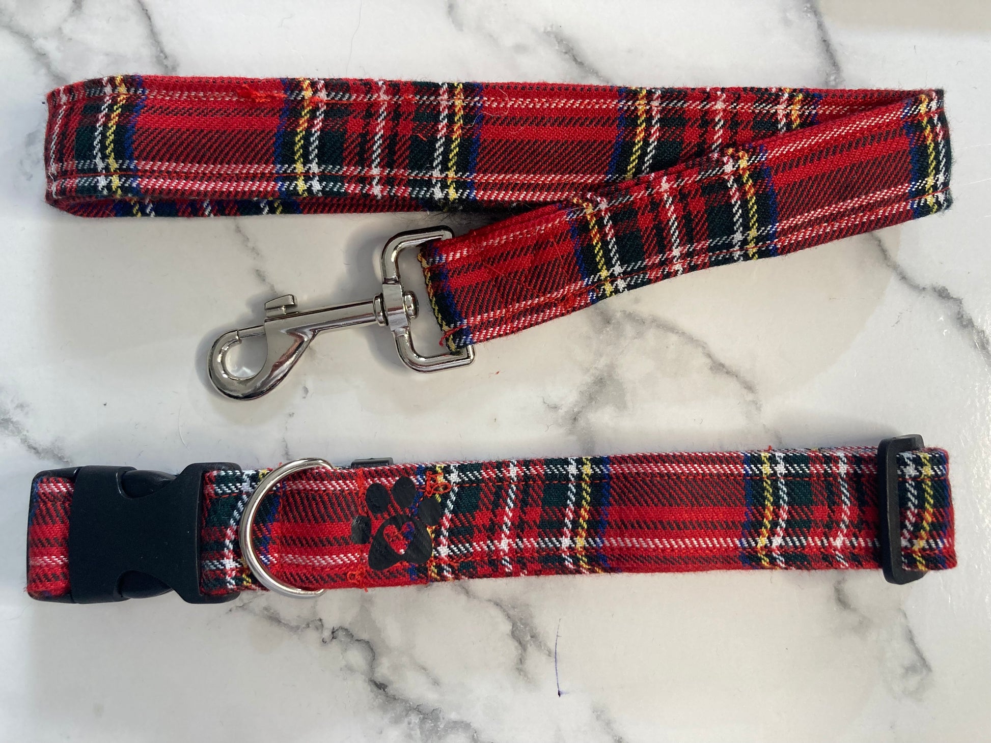 Red tartan dog lead, handmade pet lead, matching dog accessories