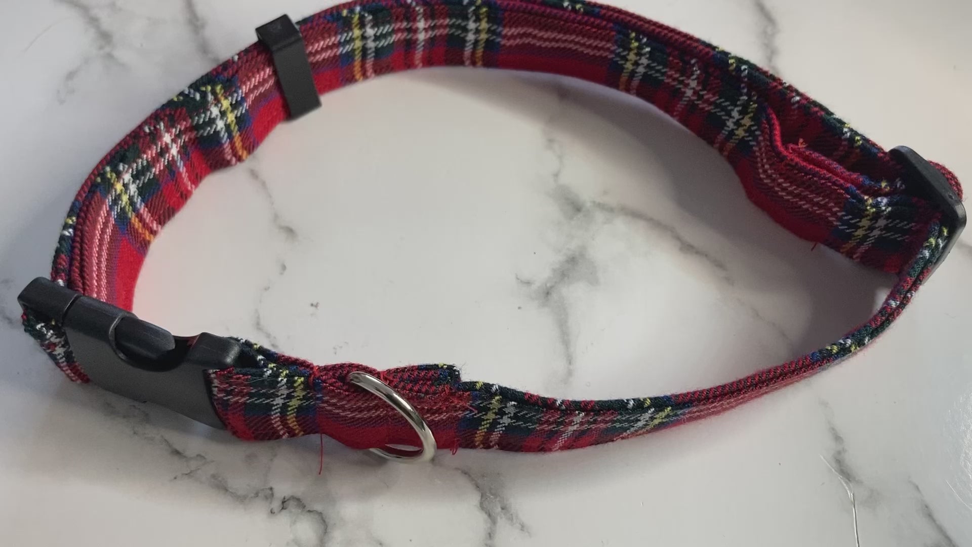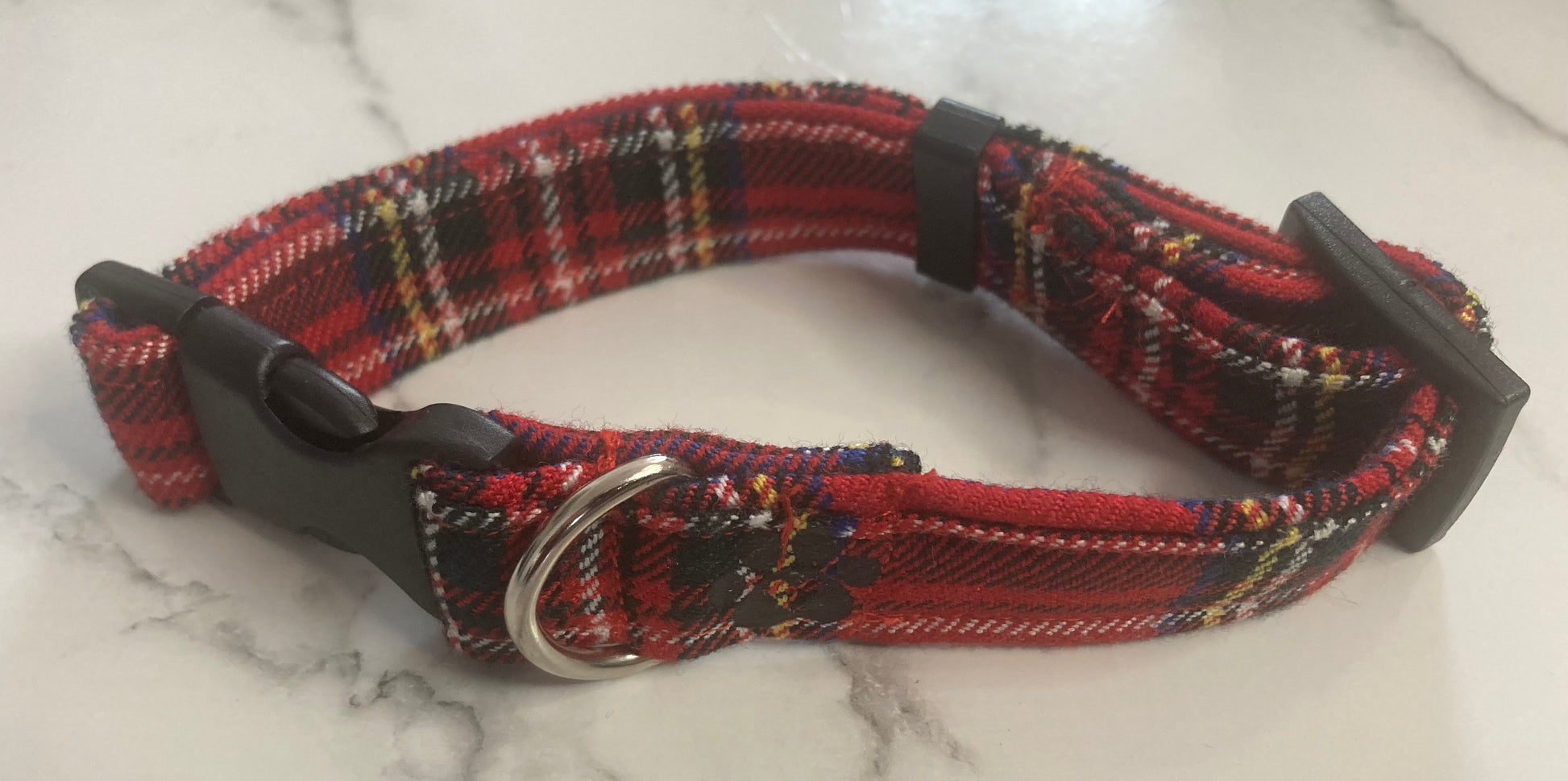 Red tartan dog collar, handmade, adjustable dog collar, pet collar, matching dog accessories